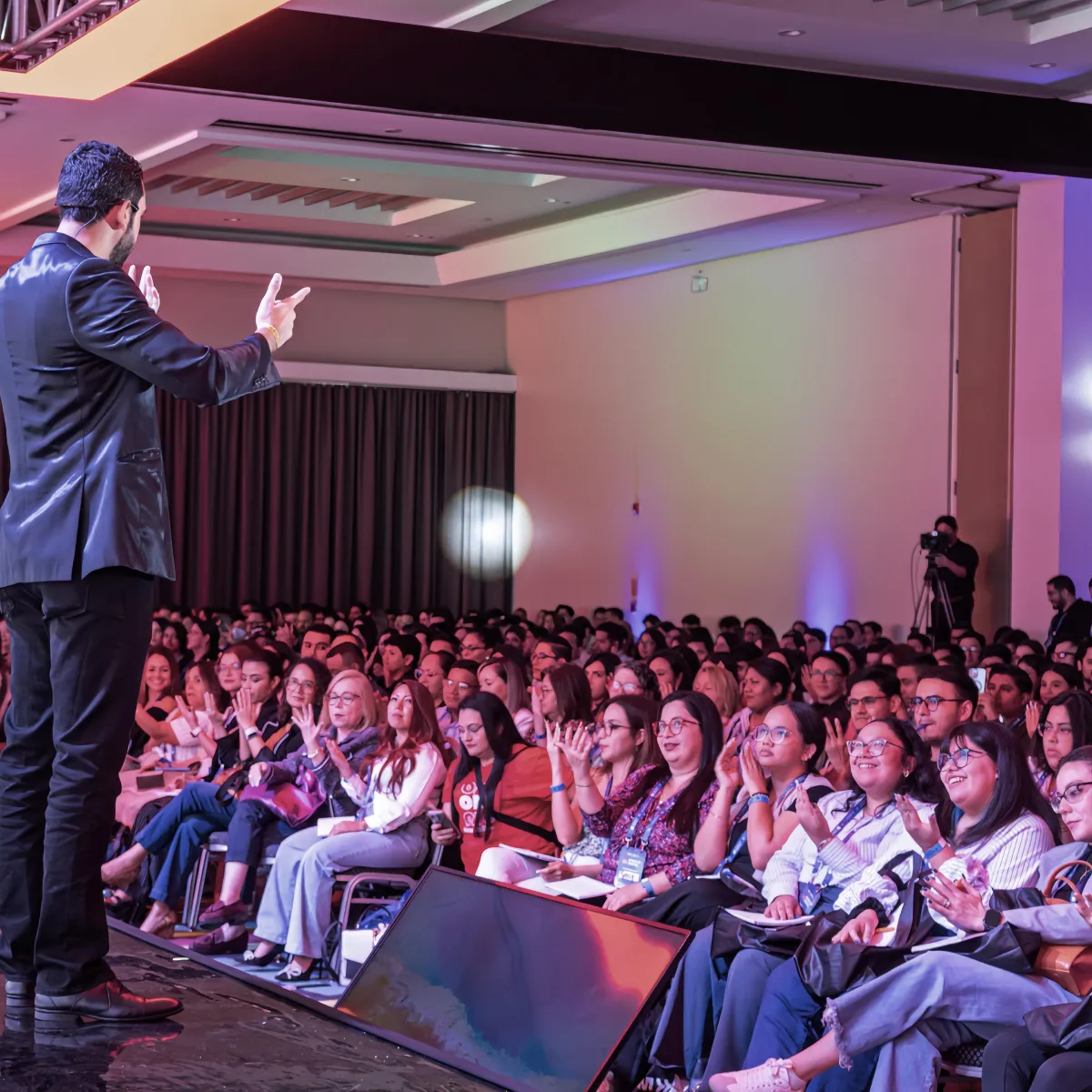 Cada colaborador que participa brilla. Mensajes claves de tu empresa integrados sutilmente. Tu audiencia de pie aplaudiendo.